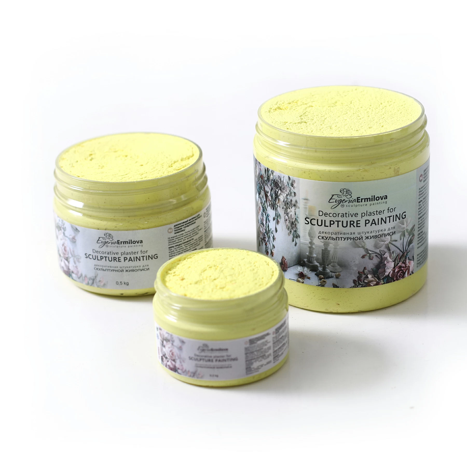 Decorative plaster for sculpture painting “Lemon” 0.5kg – tinted plaster for sculpture painting in the author’s technique of Evgenia Ermilova “Sculptural painting”.